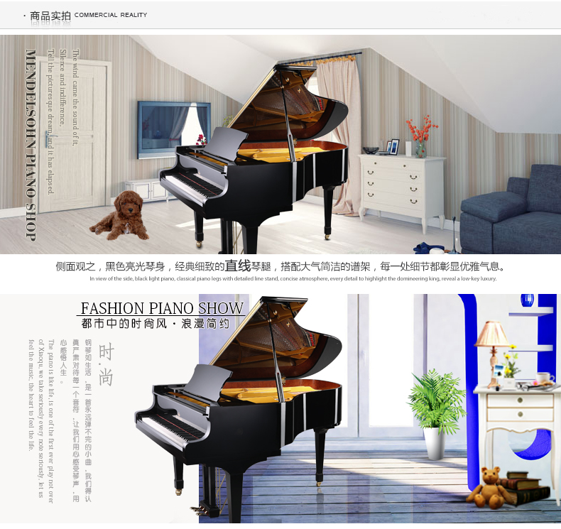 黑色亮光琴身,采用國內外流行的流線型造型,清雅、簡潔,講究純熟的質地和技術,崇尚合理的構成工藝。