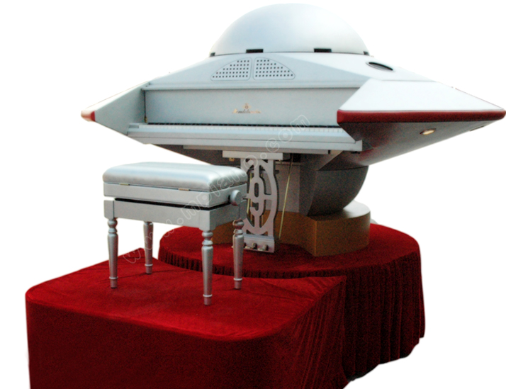 琴身設(shè)計(jì):為了紀(jì)念中國(guó)共產(chǎn)黨成立90周年,德國(guó)門德?tīng)査射撉俟咎氐匮邪l(fā)了一款外形酷似飛碟造型的概念鋼琴——“ 飛碟 ”鋼琴,寓意著在歷史的長(zhǎng)河中,短短的 90年,我國(guó)人民在中國(guó)共產(chǎn)黨的領(lǐng)導(dǎo)下,生活水平、綜合國(guó)力像飛碟般的速度發(fā)展著。