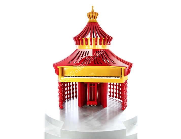 “皇冠”琴的設計理念源于“門德爾松”品牌愿景——打造“皇冠”級鋼琴品牌,該鋼琴高225cm,最大直徑180cm;配以臺階式底座:高42cm,直徑為328cm。這款鋼琴由德、中資深設計師聯(lián)合設計,將歐洲鋼琴的設計精髓和中國元素相結合,將時尚與品味相融合。該鋼琴頂端采用歐洲風格的皇冠設計,內置藍寶石水晶球,熠熠生輝;整臺鋼琴,遠看像個大“皇冠”,給人以優(yōu)雅尊貴的視覺享受;采用中國古典式建筑流線型的架構,使整體造型優(yōu)美大氣,虛實結合的琴腿使整架鋼琴的穩(wěn)固性和平衡性都大幅度提升;圓弧形鏤空發(fā)音孔設計,保證了鋼琴的純真音質;并采用德國工藝純手工制作完成,其柔和純美的音質和卓越的彈奏性能,也將帶給您非凡的享受和樂趣;皇冠:身份高貴的象征,神圣的代表;更是高檔會所、星級酒店的吉祥之物。